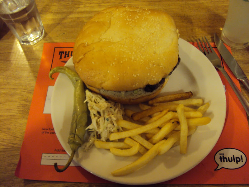 Cafe Thulp at first seems like an unassumingly small cafe, with minimalistic wood furniture where each table contains the basic ketchup, mayo and mustard. It strikes a personal note with customers by providing them with an array of comics and board games (a trend that is becoming increasingly common to cafes across this city). The walls are quite random and seem to just contain paintings or artwork without any particular theme. So we could see a whole wall dedicated to some pretty funky anime posters, some artwork of super heroes, and random pictures of flowers and landscapes. As soon as we sat down and finished looking around, we were handed two menus.